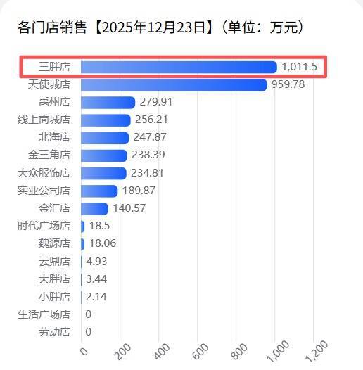 【大河财立方消息】12月24日,胖东来网站数据显示,新乡胖东来“三胖”开业首日,销售额已突破千万元,达1011.5万元,在各门店中位居第一。
