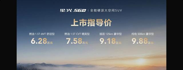 星光560同时提供燃油、插混以及纯电三种动力形式,放在同级市场中,价格都非常有竞争力。比如燃油版,6万以内起步,还是一台大家伙,这还要啥合资小型SUV?而插混版起步价8万多,和银河L7等车相比,在价格、续航方面也都有优势。